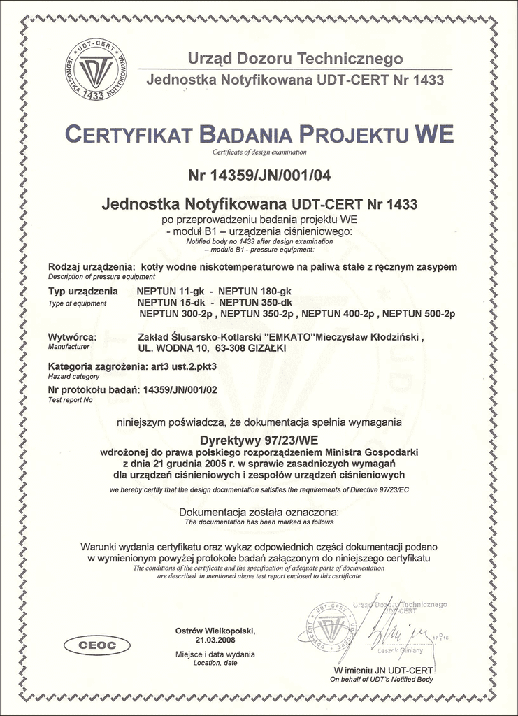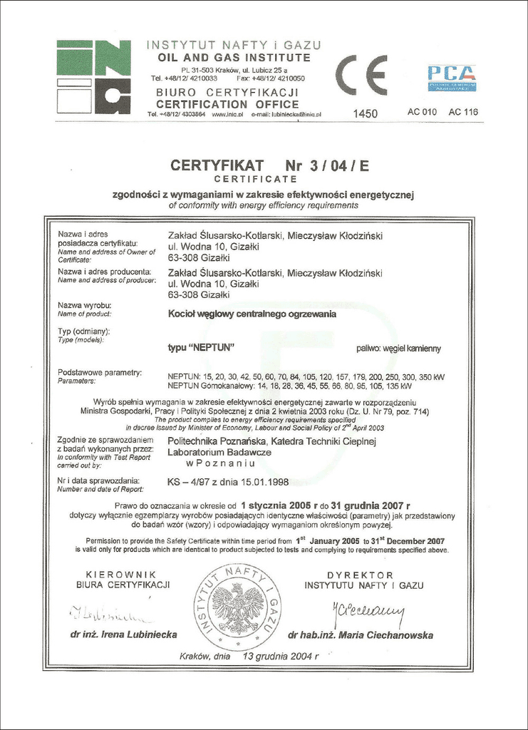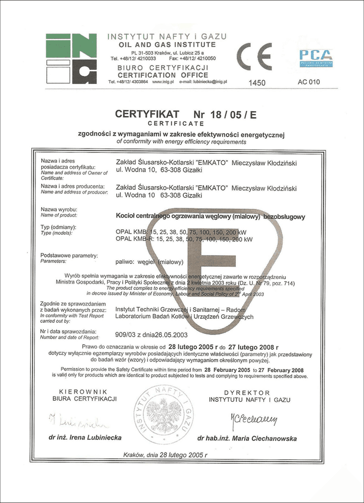 Nasze kotły spełniają najwyższe standardy jakości i efektywności. Posiadamy certyfikaty potwierdzające zgodność z normami ekologicznymi i bezpieczeństwa, co gwarantuje niezawodność i oszczędność dla naszych klientów.